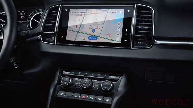 柯珞克的内饰为我们提供了两种风格选择,一是全黑配银色装饰面板,主打的是运动。另一种采用了棕色和米色拼接营造的是家庭生活化的氛围。它中控的设计依旧采用简约的风格,虽然有些大众的影子,但在一些细节之处还是保留了许多斯柯达独特的元素,比如绿色的仪表盘,带把手的中控等等。配置部分作为一款凝聚着斯柯达“实在 不简单”品牌精神的全新车型,柯珞克的功能配置在同级车中优势明显。
