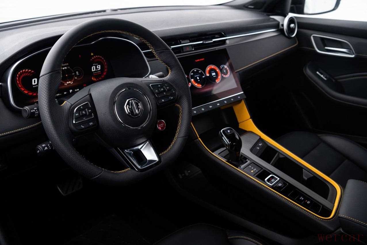 当然,除了外观以外,第三代名爵6在内饰方面,同样展现出了满满的战斗力。直观来看,试驾车采用了黑/黄色拼接内饰,黑色皮质包裹与黄色缝线,令档次感与运动感得到较好中和,再加上红色一键启动按钮、拼色运动座椅及简洁中控屏的设计,足以激起年轻人内心的荷尔蒙。当然,虽说造型设计的好坏因人而异,但就整车所带来的新鲜感而言,第三代名爵6还是有着不小优势。