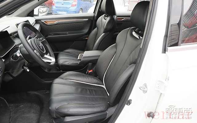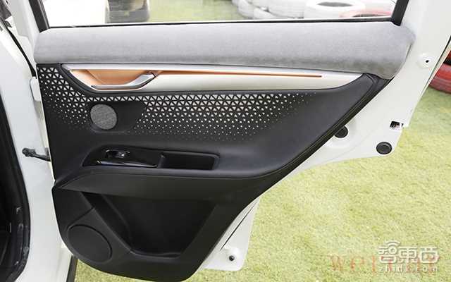 而说起更加时尚,则是指其内饰中采用的布料、配色、镂空设计、以及装饰线条等元素。首先,在其中控台顶部和门板部分除了有一部分真皮包括之外,还采用的有类似于宝马i3的浅灰色布料包裹。