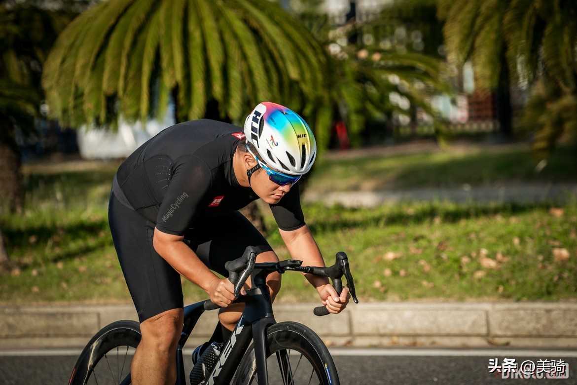 头盔束带简单微调即可完美贴合头部,当然这是一顶气动头盔的基本素质,毕竟贴合的束带能减少一定风阻。近年随着各种认证越来越严格,头盔的重量也水涨船高。FURION 3这个重量不要说在气动头盔里,就算放在轻量透气的头盔里都十分有竞争力。佩戴感受自然而然是非常轻盈的,这方面绝对可以给个满分好评。由于盔体是偏圆的,而且是亚洲版型,所以戴上头的观感不像那些欧版气动盔那样看上去就气动。骑行体验