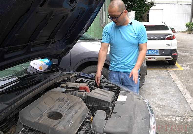 打开发动机舱盖,师傅准备开始干活了。