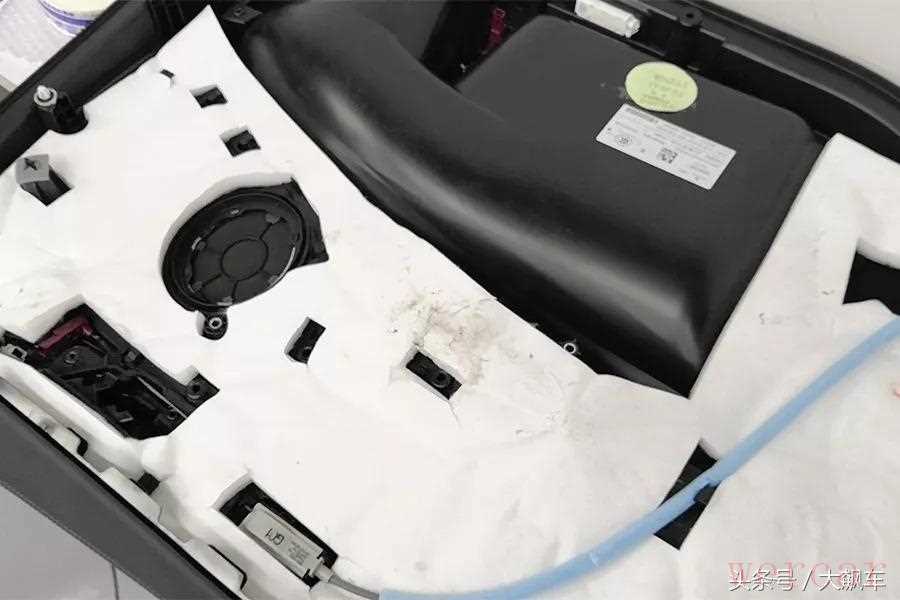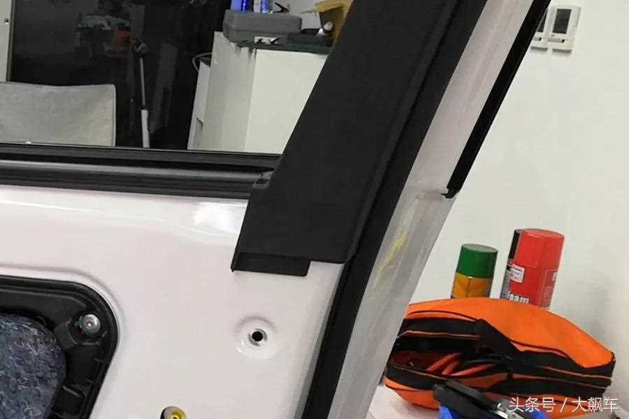果然在前门上发现了气压感应器,这个装置的原理很简单,将车门内部空间密闭,如果发生撞击,车门内的空气会急剧压缩,气压传感器就会被触发,直接弹出侧气囊。