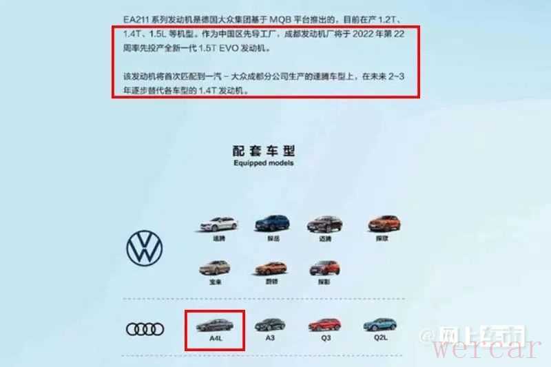 ↓ 全新A4L将搭载1.5T发动机 ↓