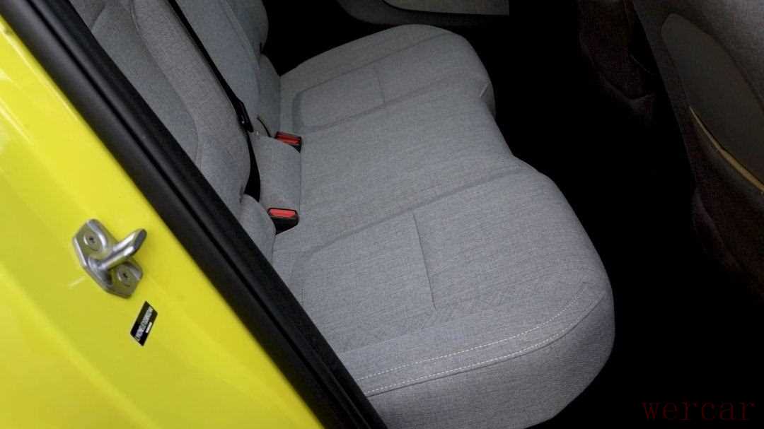 将前排座椅调整到正常行驶姿势后,可以看到后排头部空间较为充裕,但坐垫太短,长时间乘坐会有一种坐小板凳的感觉。