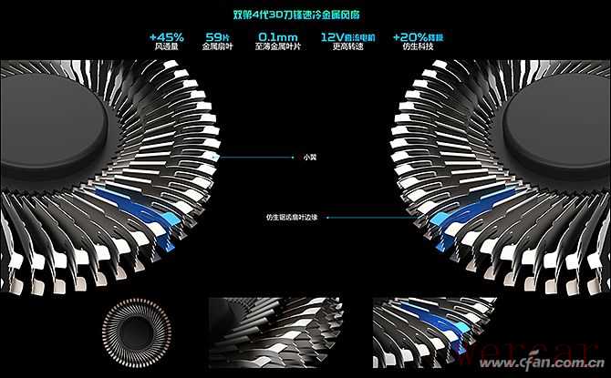 这款游戏本采用了豪华的双风扇六热管,主要热源表面还覆盖了大面积的纯铜均热板,两个散热风扇都是第四代刀锋速冷金属风扇,内置12V直流电机,59片0.1mm仿生扇叶,较之常见的5V塑料风扇风通量增加了45%,再配合四风口和立体风道设计,能够加快空气循环,尽快的将热量排出机身外。