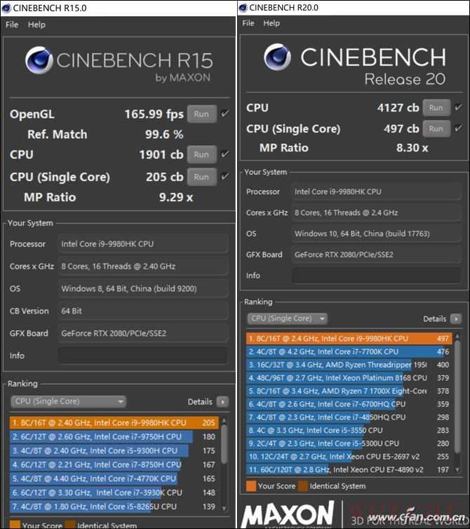CINEBENCH R15和R20测试