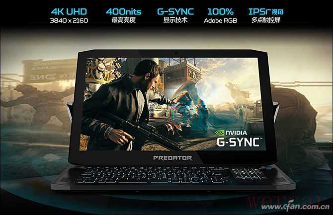 掠夺者刀锋900的屏幕原生支持NVIDIA G-Sync技术,可以提升游戏画面的流畅性,最大限度避免画面撕裂现象。唯一的遗憾,也许就是这块屏幕的刷新率只有60Hz,没能达到144Hz的电竞屏标准。然而,现阶段超高刷新率和4K分辨率还不可兼得,掠夺者刀锋900选用更高的分辨率,也是寄希望于可翻转的触控屏幕,让它在扮演顶级游戏本之余,再抢占一些原本属于“设计本”领域的市场蛋糕。