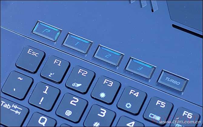 为了提升游戏玩家的操作效率,掠夺者刀锋900在键盘左上方还增加了5个快捷键,分别是3个可自定义编程按键、P键群组键和Turbo一键加速键。