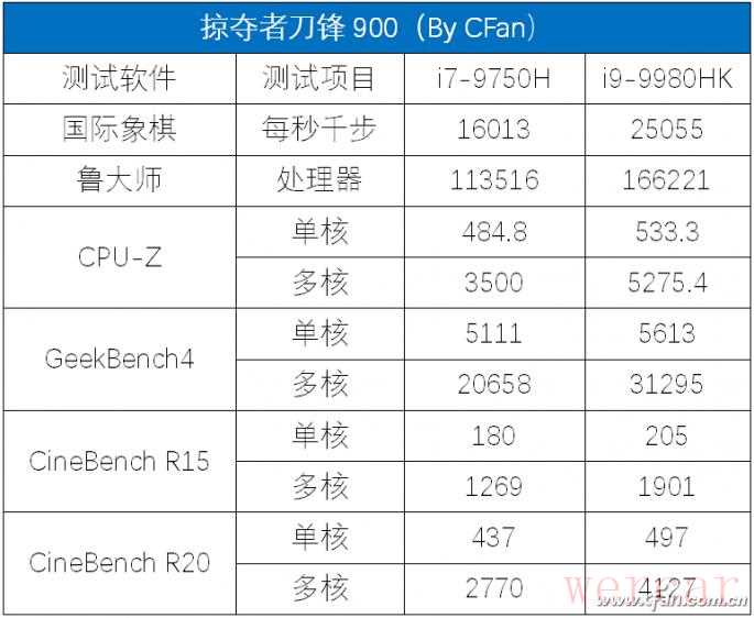 为了方便对比,咱们再来看看i9-9980HK和游戏本最常搭载的i7-9750H跑分汇总一下,可见前者拥有秒杀后者的性能。