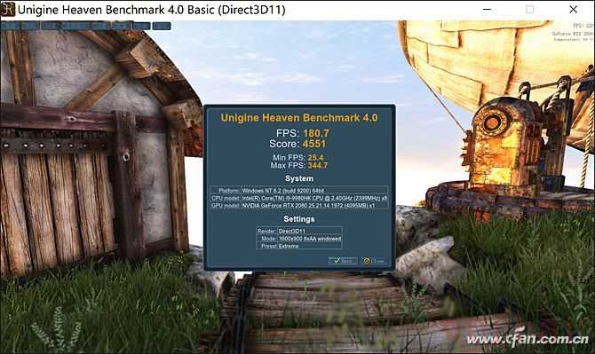 再来看看掠夺者刀锋900的3D性能。在Unigine Heaven 4.0(天堂)测试中,这款游戏本可以取得180.7FPS的成绩,在Valley(山谷)中也获得了131.5FPS的性能。