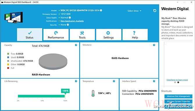 掠夺者刀锋900同时还内置 32GB内存(2×16GB),以及2块512GB PCIe SSD(WD SN720),这套配置足以应对未来2~3年内的复杂应用环境,无论是最新3A游戏大作还是专业设计软件都毫无压力。