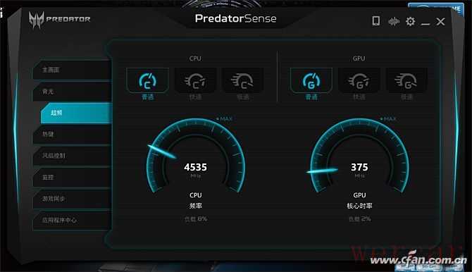 通过掠夺者刀锋900预装的掠夺者控制中心,我们可以随时查看实时硬件信息、一键超频(也可通过Turbo键)、切换或自定义键盘背光、优化网络性能、给自定义编程按键增加宏设置等等。