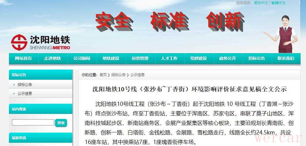 9月18日,沈阳地铁对地铁10号线(张沙布~丁香街)环境影响评价征求意见稿进行公示。