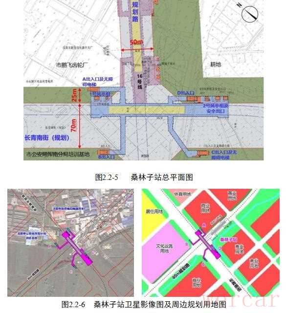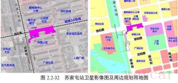 图 2.2-16桃仙街站卫星影像图及周边规划用地图