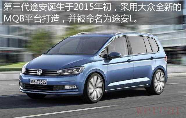 在此平台上诞生过的车型还有奥迪A3、TT、大众高尔夫、斯柯达明锐等。而途安L则是大众MQB平台上诞生的首款MPV车型,而采用“L”为后缀,也表明这款新车将比现款车型在车身尺寸上将有明显增加。