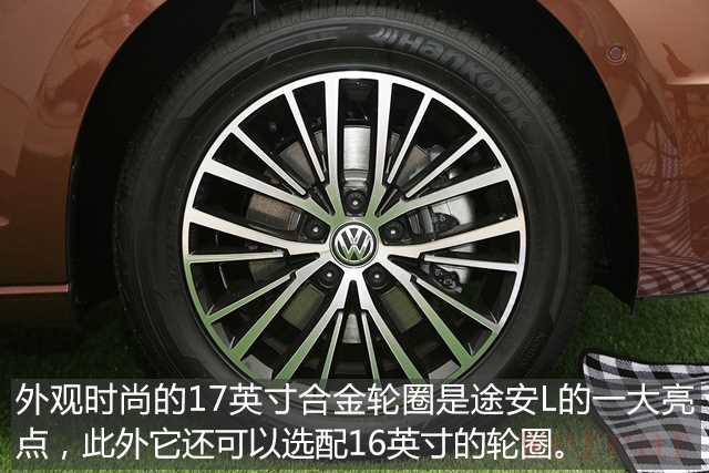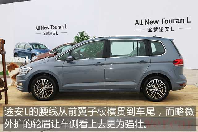 全新途安L车侧的腰线从前翼子板横贯到车尾,突出了力量感。而略微外扩的轮眉让车侧看上去更为强壮。此外,途安L脚下踩了一双215/55 R17的战靴,17英寸的多辐式合金轮圈展现了新车时尚的一面。
