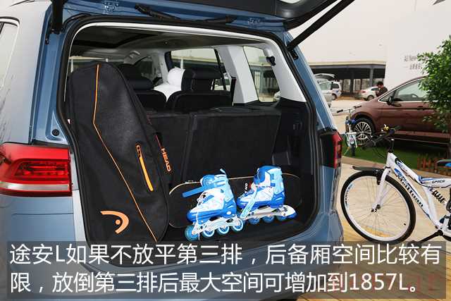 车内空间的提升可以说是全新途安L的核心竞争力,它采用了全新的座椅翻折方式,翻折后的座椅与行李箱形成一个平面,大幅地扩充了行李厢的容积,令车内空间有了更多变化的可能。