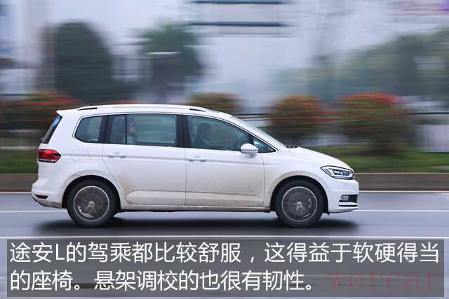 不得不说,途安L不管是驾还是乘都比较舒服,这得益于软硬得当的座椅。此外车内的多功能按键操作起来很方便。有的车型只要一看中控台就有种密集恐惧症要发作的感觉,但途安L在这方面设计的非常简洁,而且实用。在制动方面,途安L的制动力分布比较均匀,不会出现轻踩点头的现象,随着制动踏板的深入,制动力会逐步增加,这让我比较喜欢,一位一个家庭中经常会有爱晕车的人员,这种调校可以大大提升了乘坐的舒适度。悬架上,途安L表现得比较有韧性,在过减速带或者坑洼路面时,很好的吸收了来自于路面的振动。