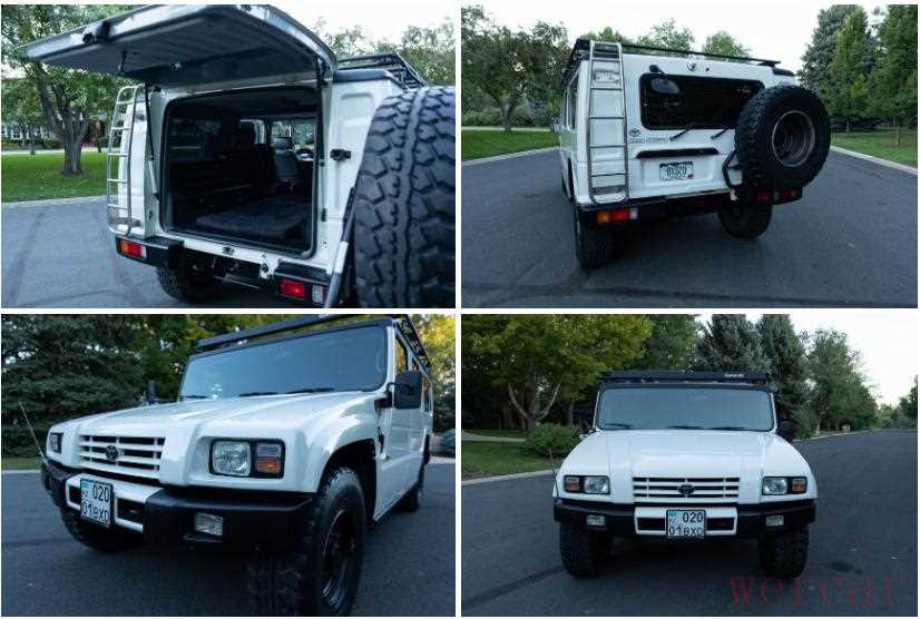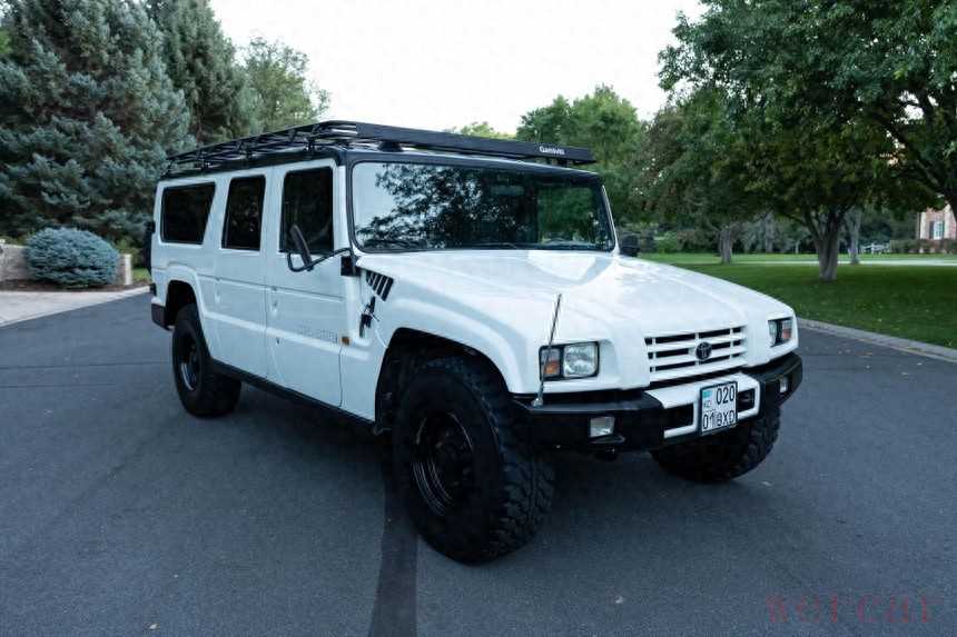 超级巡洋舰实际上比悍马H1大,长5,090毫米,宽2,169毫米,高2,075毫米。这辆车重2.9吨,所以丰田的越野车比美国高底盘轻半吨。这辆车的状况还是相当不错的。背面安装了不锈钢梯子,供用户在加米维蒂屋顶架上存放物品。