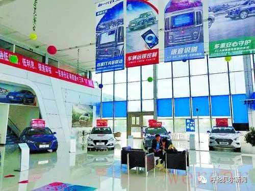 北京现代呼伦贝尔友邦4S店的展厅内部