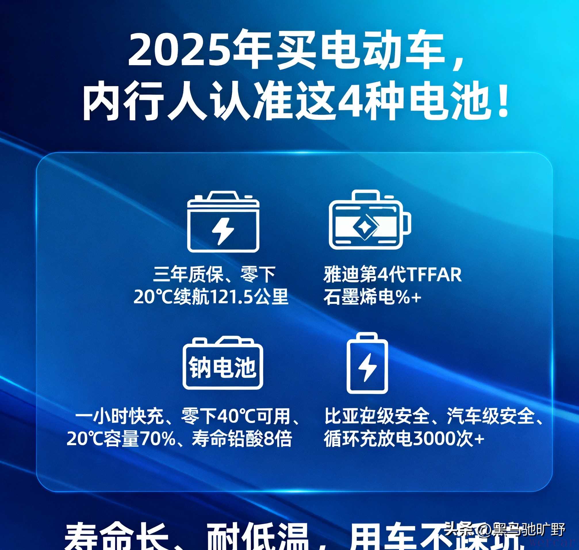 2025年购车必看,内行人推荐四种电动车电池,寿命长耐低温,告别用车陷阱!