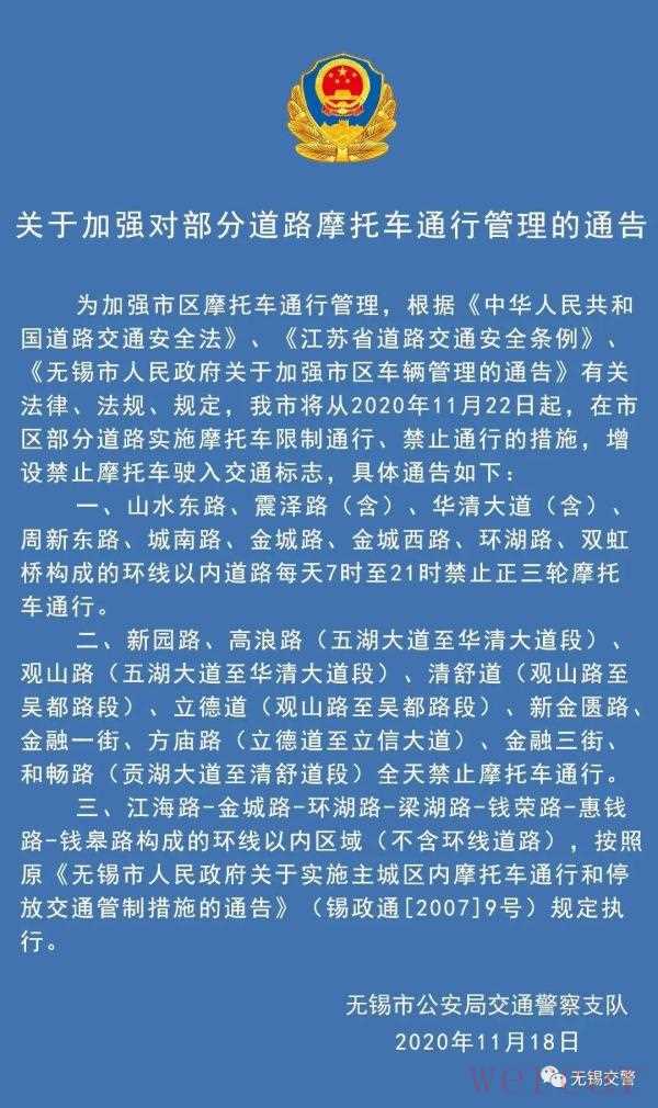 1、无锡最新的摩托车禁摩路段和区域有哪些?