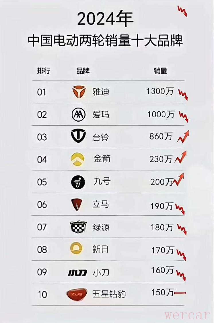 电动车品牌虽多,但最具有影响力的还是销量前十大品牌,有数据显示,2024年我国的电动车总销量为4950万,而前十大品牌销量占比达到90%,所以,前十大品牌来自哪里,可以代表这个城市电动车产销实力。