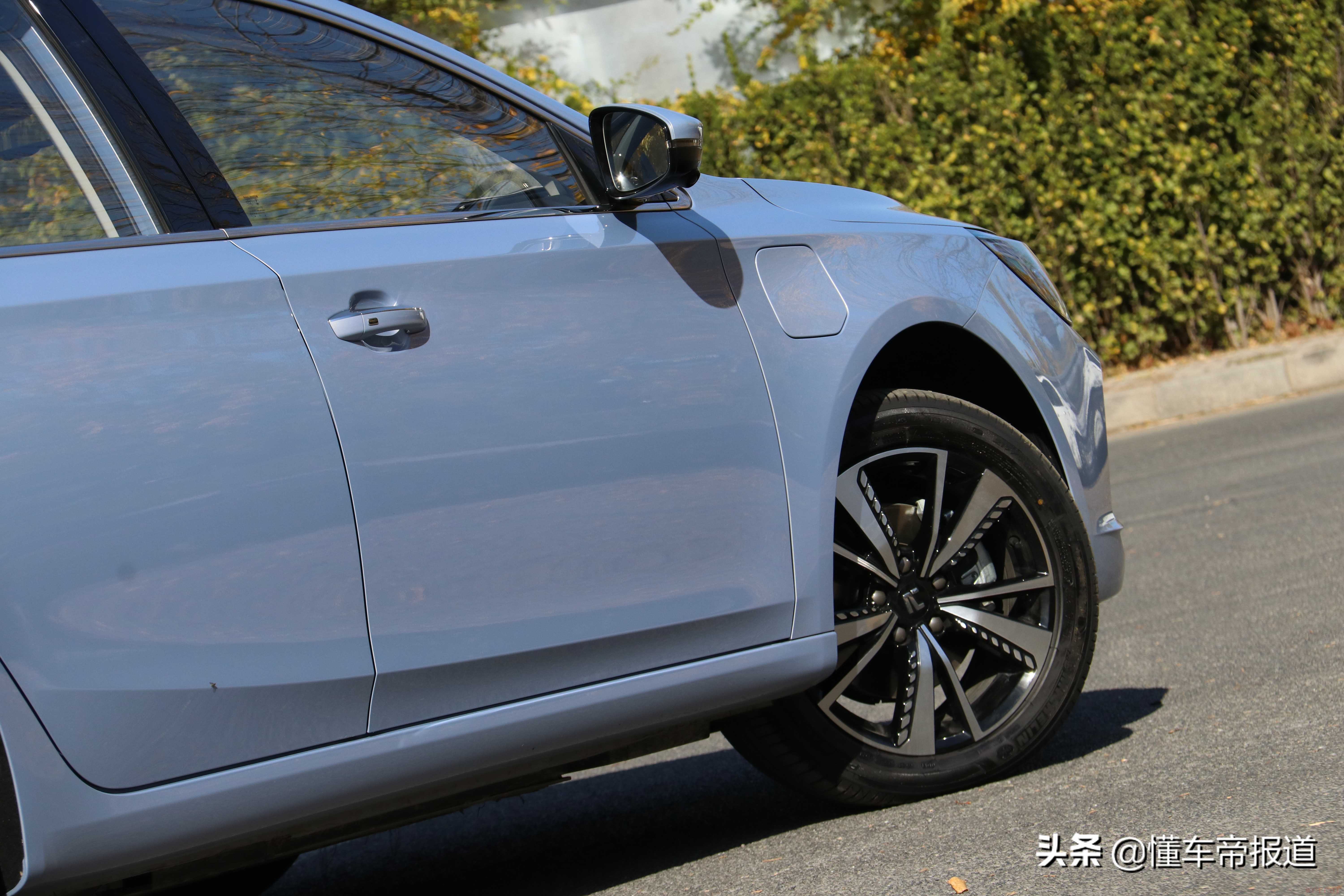 我们实拍的车型采用双色多辐条轮辋,复杂的造型带来了不错的设计感,根据官方表述,该样式经过空气动力学的优化,能一定程度上提升续航里程。尺寸方面为215/50 R17,轮胎配备了米其林的PRIMACY 3,是一款主打静音和舒适的型号,这也比较符合ER6的定位。
