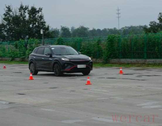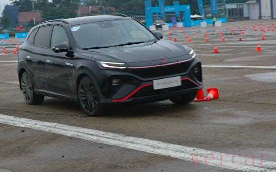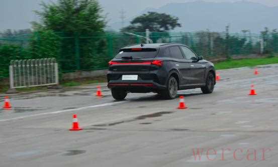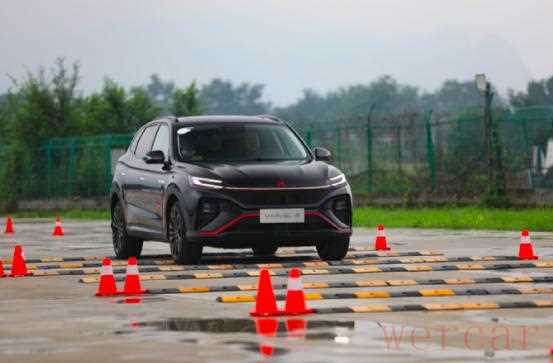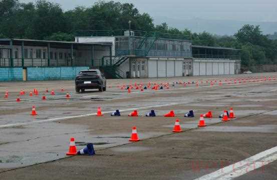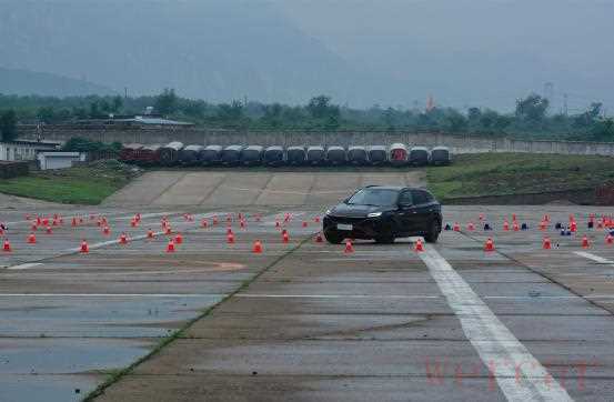 接下来就是让人充满期待的测试环节了,本次测试设置了零百加速/刹停、S弯变线、颠簸路、环状路、麋鹿测试、智能泊车6个环节。不得不说的是,在测试之前阵雨不断,所以湿滑的水泥路面对这些测试相当的不友好,不过也更能体验出这款的操控性能。