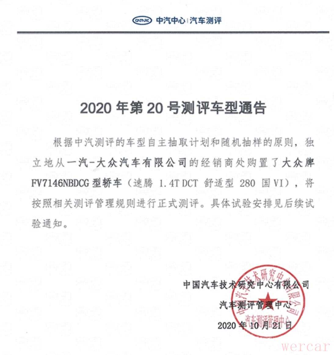 本周C-NCAP中汽研完成了对一汽-大众2020款速腾的碰撞测试工作,车型为中汽研市面经销商处购得,配置为2020款速腾1.4T DCT 舒适型 280 国VI。不过,这款车目前已经处于停产在售状态,新款速腾已经升级到2021款,但并不影响最终测试成绩。