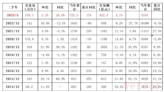 2022年,总体二手车交易量呈现相对偏低的状态,同比下降9%。
