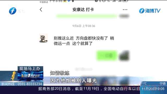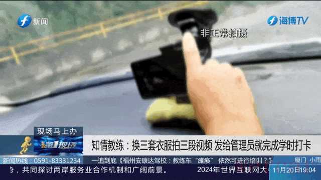 今年5月31日,《现场》栏目报道了福州安康达驾校湖前训练场,使用报废的教练车给学员打卡学时。(此前报道:“瘫痪”的教练车还能培训?节目播出后......)消息播出后福州市道路运输事业发展中心对这家驾校进行了停业整顿等的处罚,纠正驾校的违规行为。但是,最近有知情教练又打来热线说,安康达驾校不但没有改正错误,而且还升级了违规打卡学时的方法,也造成了一些学员与教练矛盾的扩大。究竟是怎么回事呢?