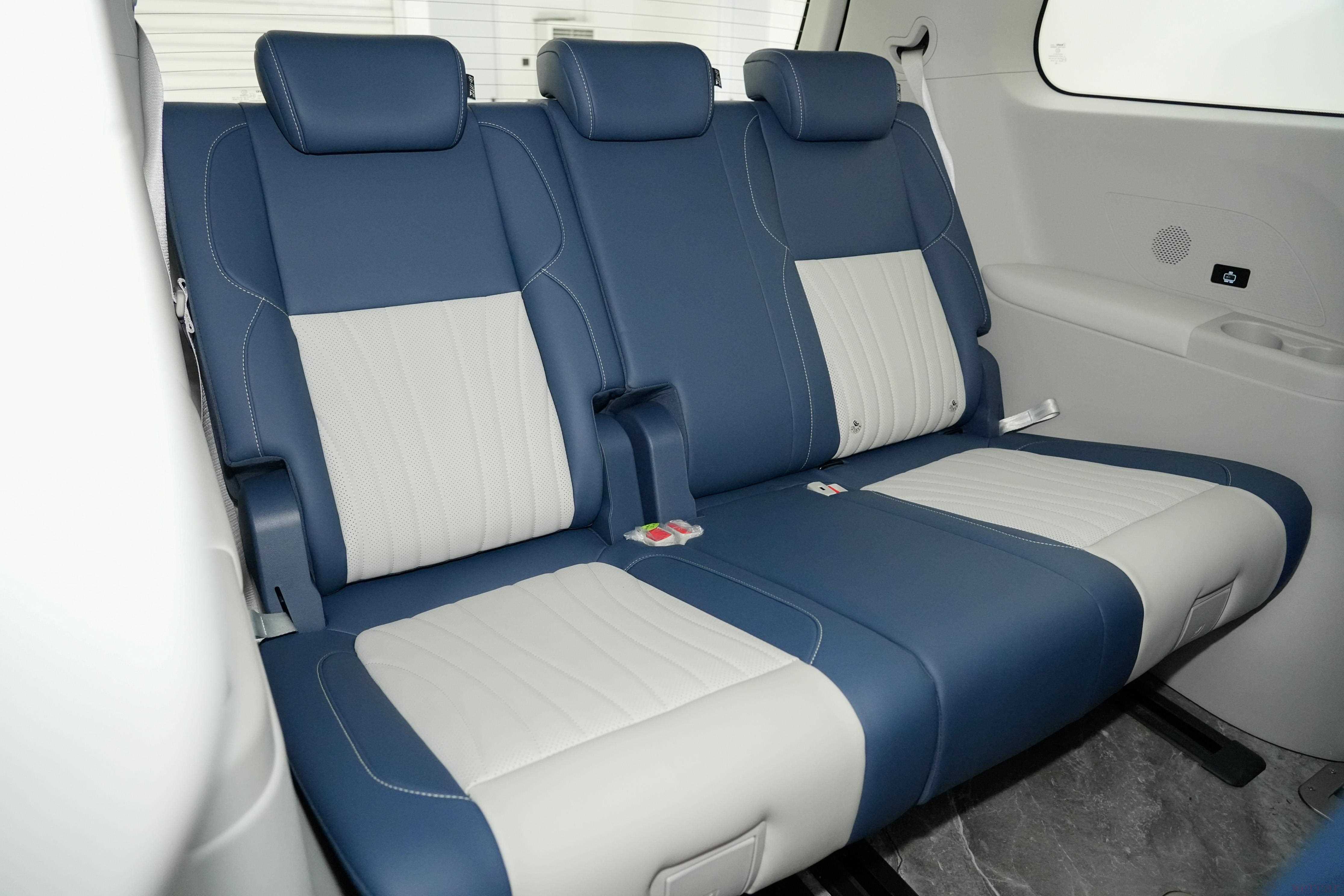 座椅的配置方面前排都是支持加热和通风功能,第一和第二排支持电动调节;主驾驶座椅支持10向调节、 座椅记忆功能,副驾驶座椅支持 4 向;第二排是零重力座椅,支持腿部、腰部调节,还具备加热、通风按摩功能,以及小桌板;第三排可以前后、靠背调节,还可以按比例放倒。不过如果第三排也支持电动座椅调节就好了,你们说是不是?
