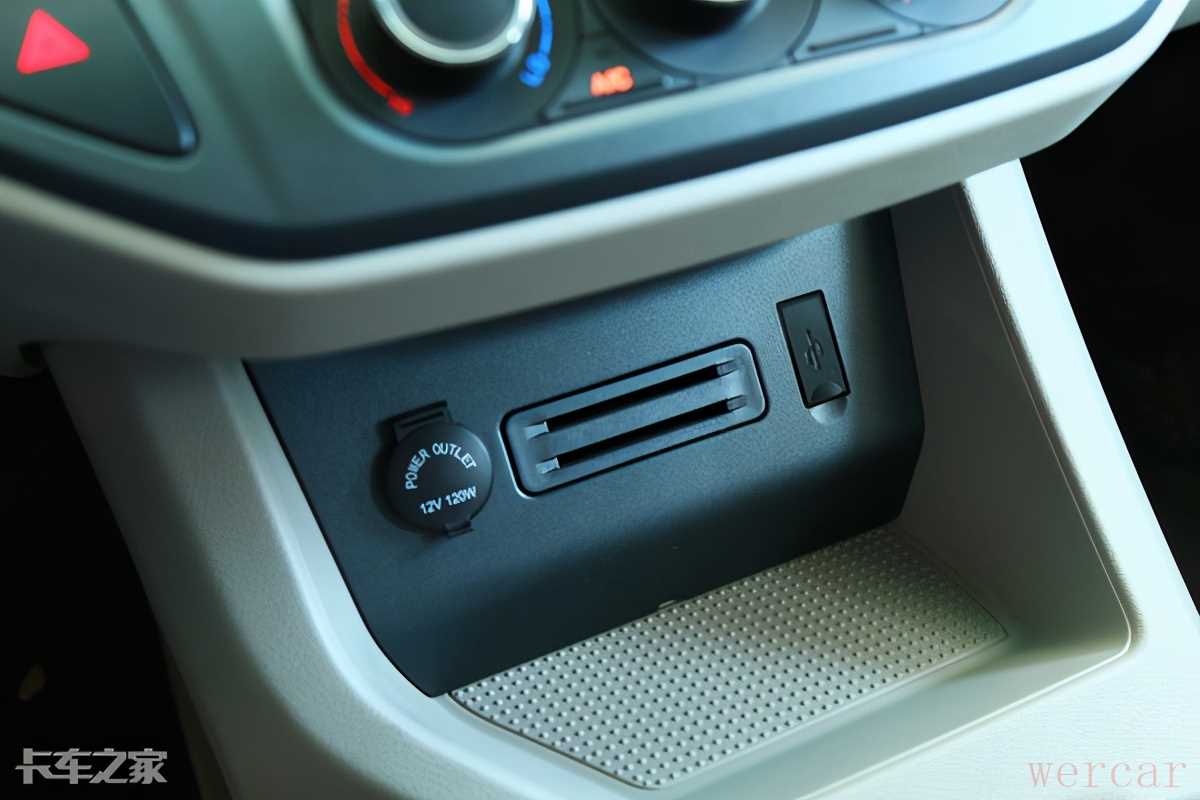 下方提供了一个12V点烟器接口以及一个USB电源接口,同时还提供了两组卡槽,小细节中体现出菱智V3封闭货车的实用性。