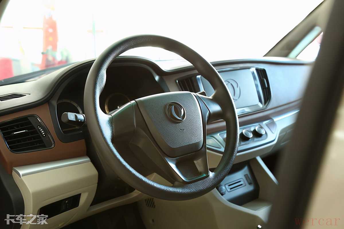 由于菱智V3封闭货车的属性,车内的配置算不上丰富,塑料方向盘没有任何多功能按键,而整体握感还是比较饱满的。