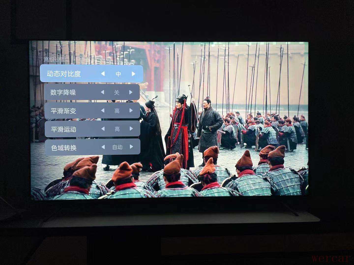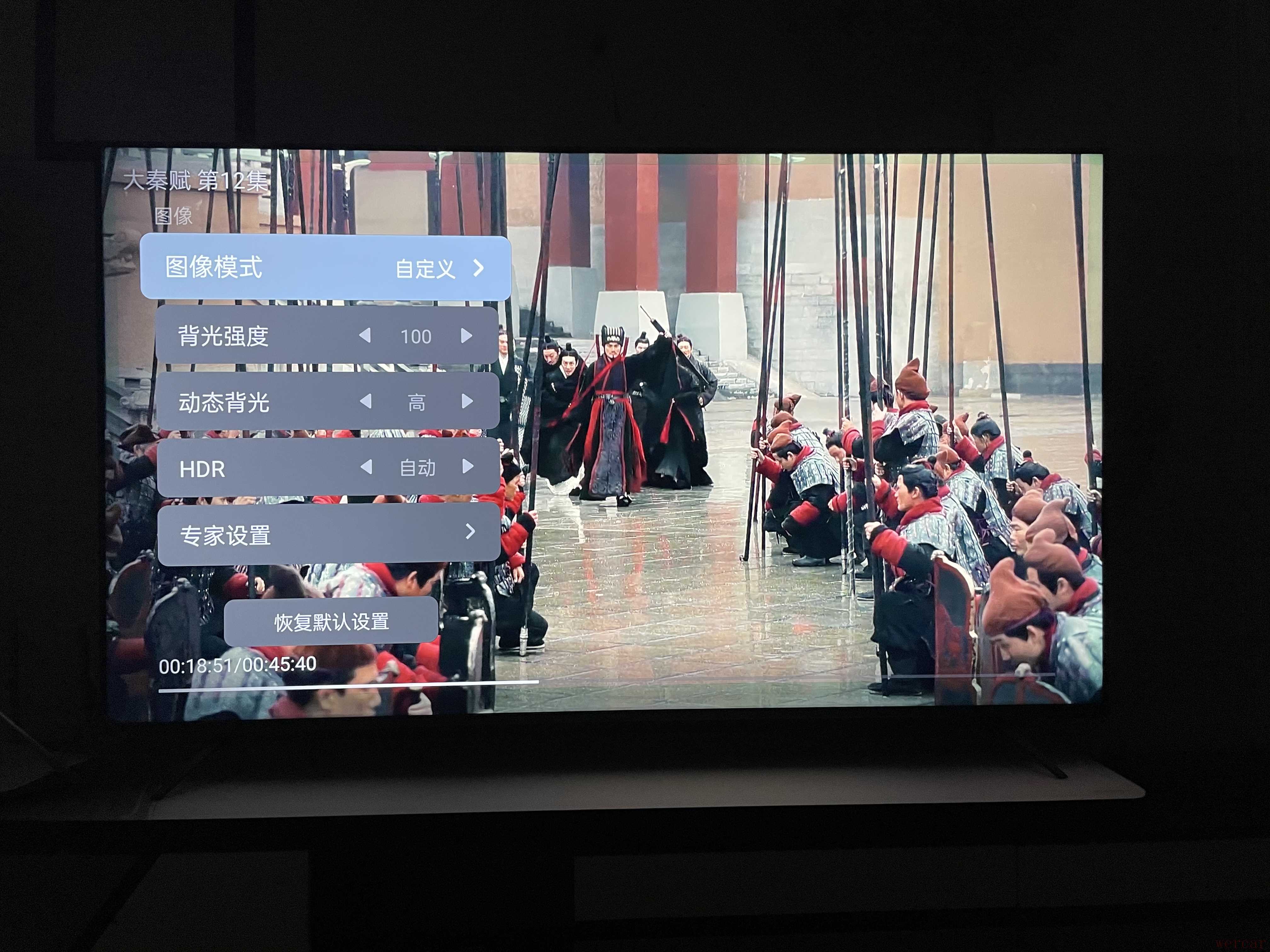 比如播放当下最火热的电视剧《大秦赋》,无论是张鲁一演青年嬴政的皮肤,还是秦军的装饰,宫殿的厚重质感,都能够让用户感受到这种大制作之美,用户如果对饱和度色温等不满意,还可以进行调整,尤其是平滑运动开启后,能够感受到一种画面流畅的变化,这种体验相当高级!