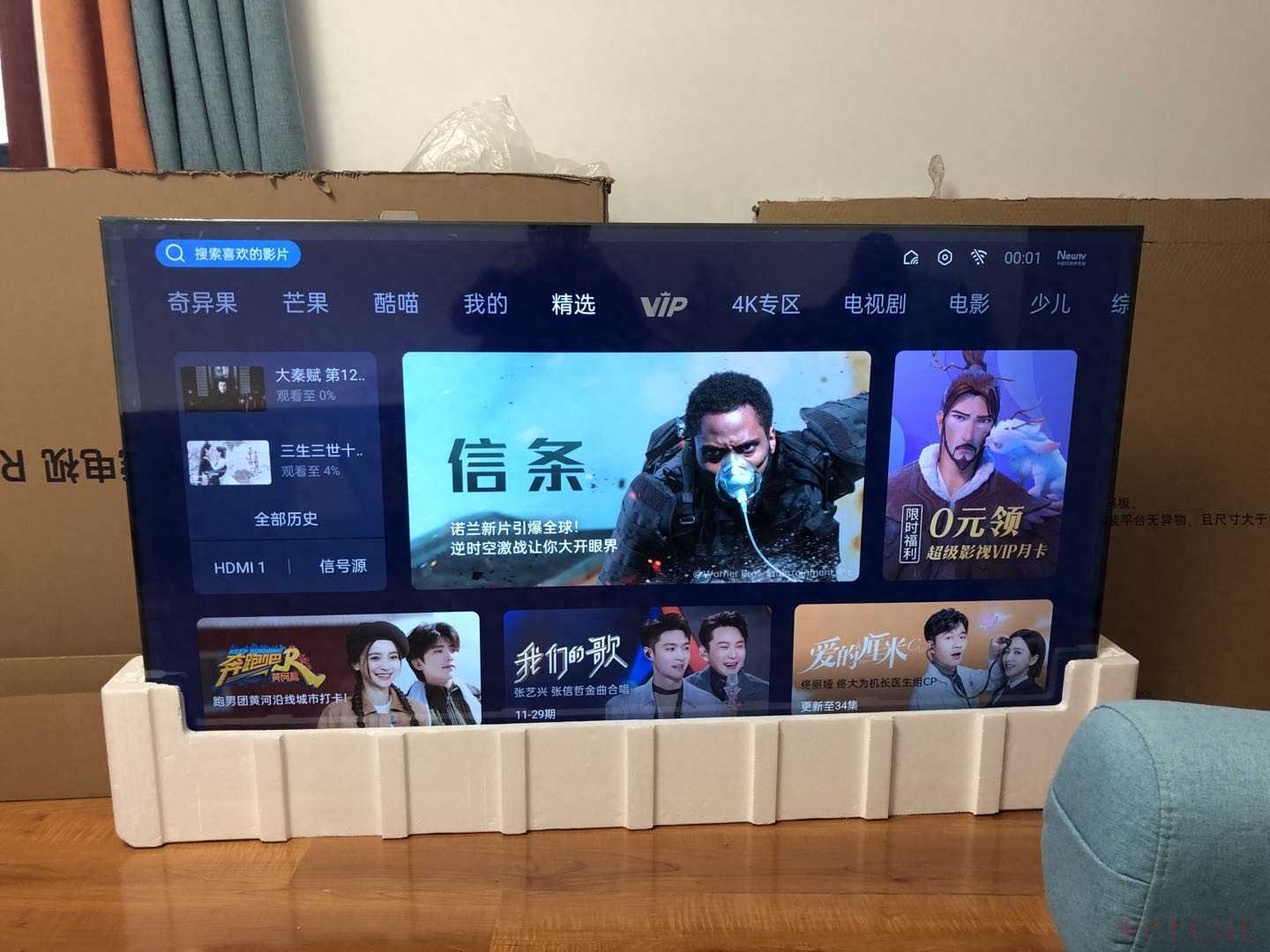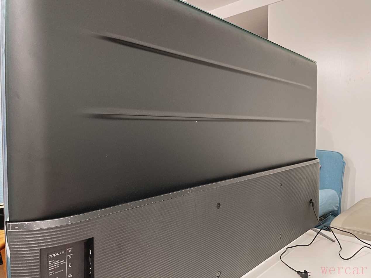 拿到这个大家伙的时候,着实还是有些被震撼到,1448mm的长度以及834mm的高度,几乎占据了电视柜的可用空间,但电视从来不嫌小,开机之后就能够享受自己的IMAX厅!此次OPPO在外观的设计还是拿出了绿厂的实力,极窄的边框以及悬浮的4K屏幕,类似于智能手机上的2.5D玻璃,只不过屏幕相比于边框部分,凸起来至少5毫米左右,有种世界呼之欲出的感觉,加上98%的屏占比,放在客厅的确是极具观赏效果!