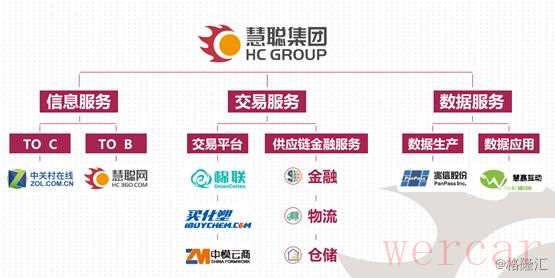 好了,我们再来看上面业务调整这张图,慧聪集团,是的,敲黑板划重点,现在要叫慧聪集团,下面业务主要分为三项,这比过去的业务架构清晰的不能再清晰了。