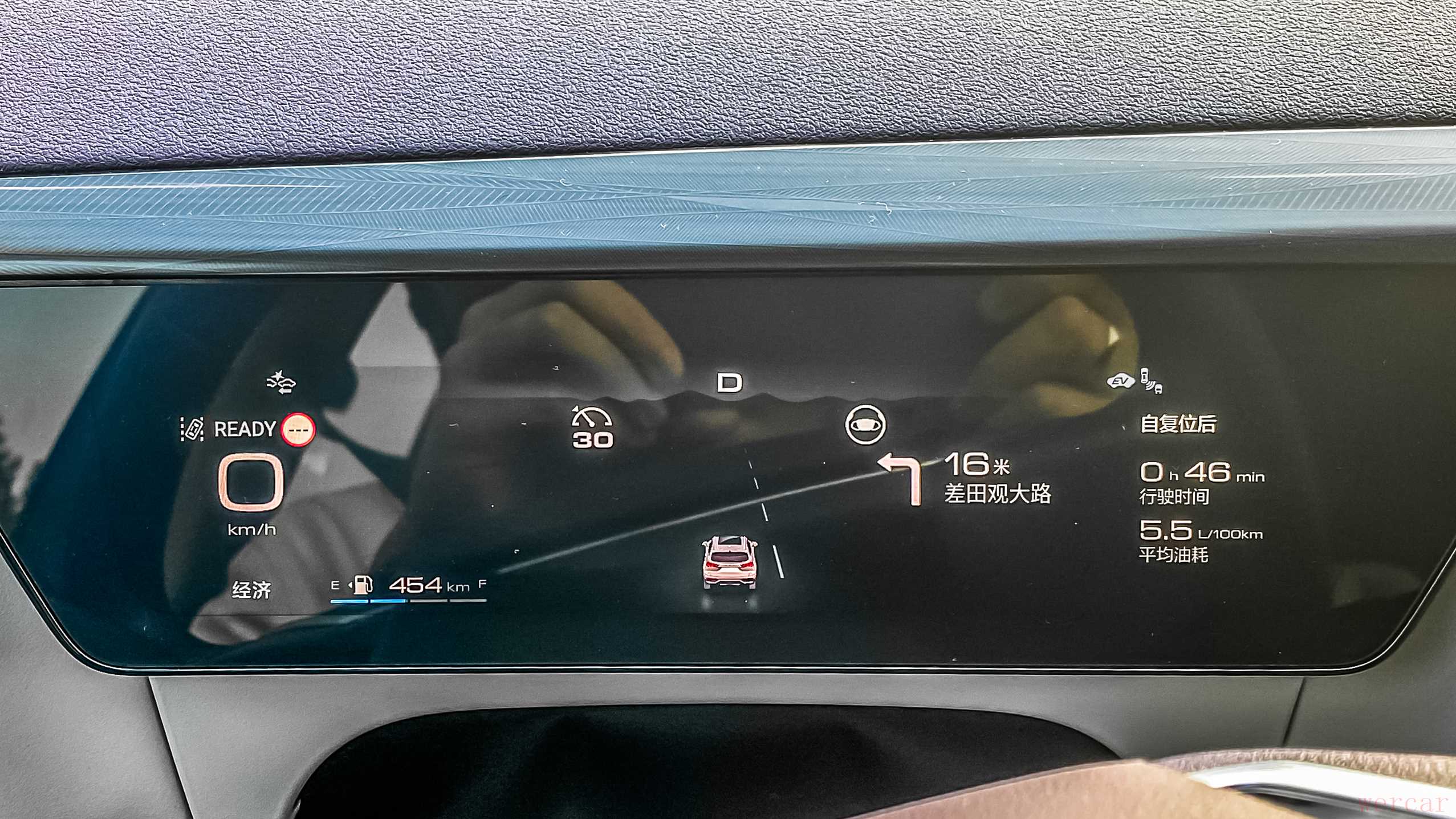 虽说在高速上它只是采用发动机直驱的模式,但你有动力需求下,它立马会转变成并联驱动,这时候500多牛·米的扭矩全在推动你的身体,体感非常强烈。同时巡航时能量回收的速度也非常快,毕竟容量不大,加上聪明的电池管理系统运作,在急加速的工况下,它总能给到不亏电又力道十足的行驶姿态。