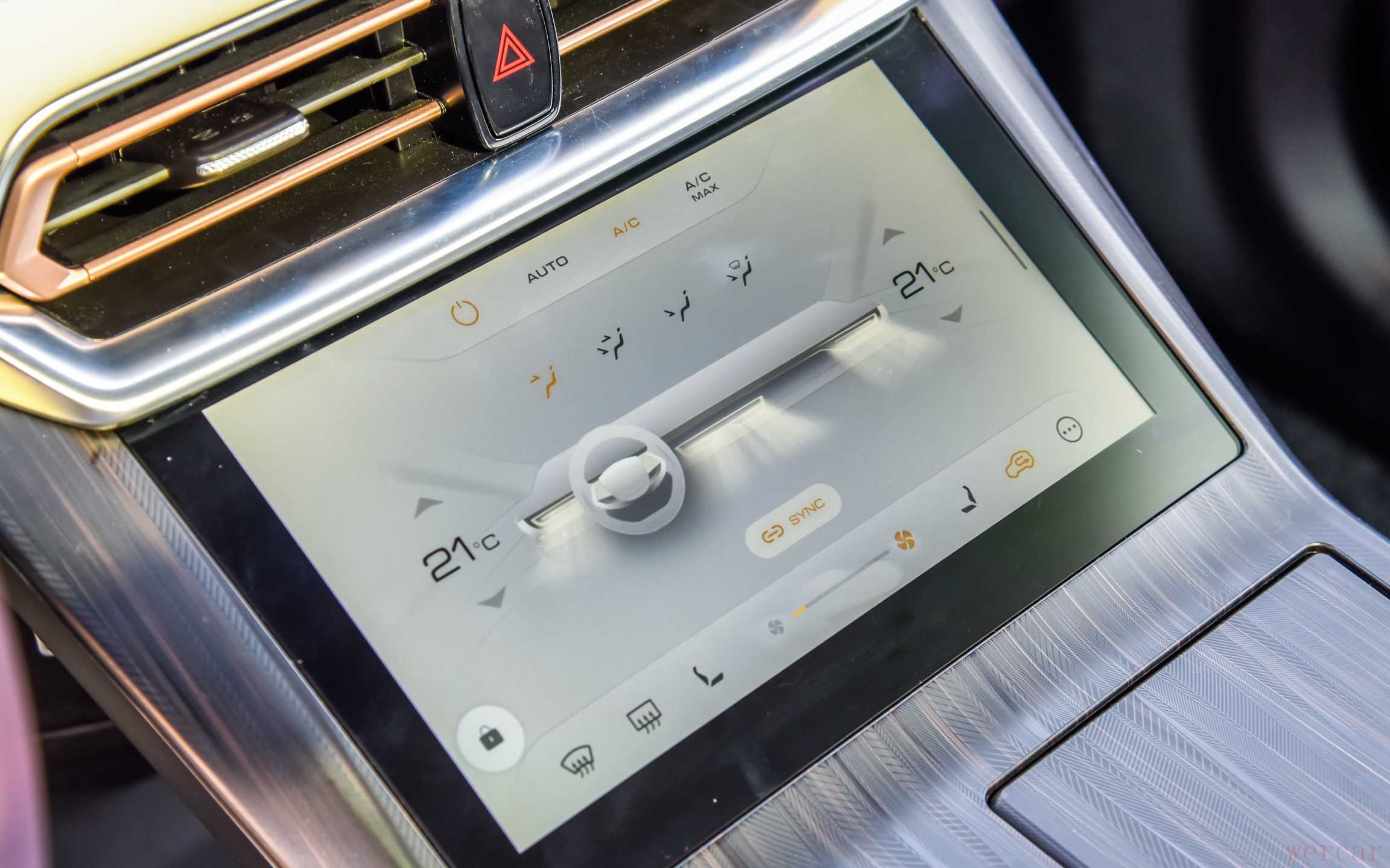 当天这些功能我都一一体验,但我认为全车最好用的是这空调触摸面板,当下许多主流空调调节触摸屏,不是采用钢琴烤漆材质,就是需要到屏幕中准确调节,一来沾染指纹非常难看,二来开车时,这是非常危险的操作。