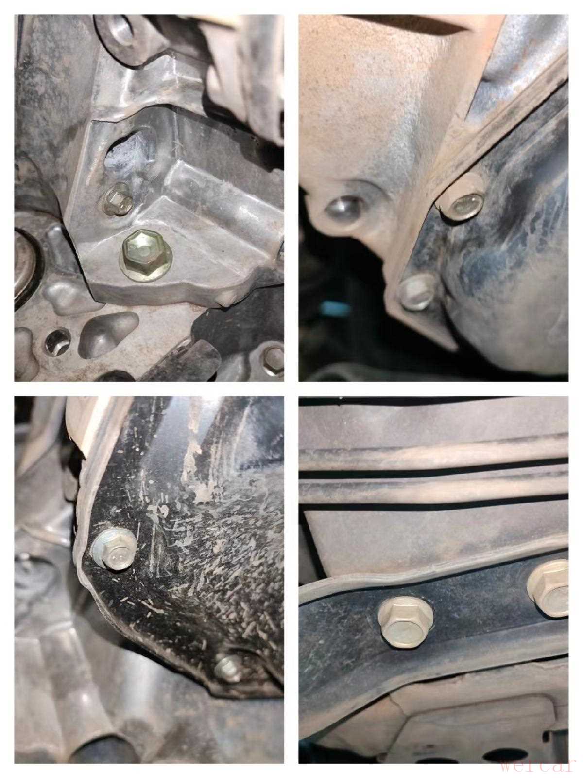 大哥看到我向他和卖家走过来,还以为检测检测结束了,忙走过来问我车况怎么样?我小声告诉大哥:车况不错,你放心。接着我便向卖家走去,说可以看底盘了,要不了多久就结束了。车子升起来后,我首先对发动机的油底壳和变速箱进行了检查,没有发现渗油的现象,拆装和更换的痕迹同样没有,元宝梁螺丝也处于原厂的状态,底盘的状态我认为给个完美都不过分。