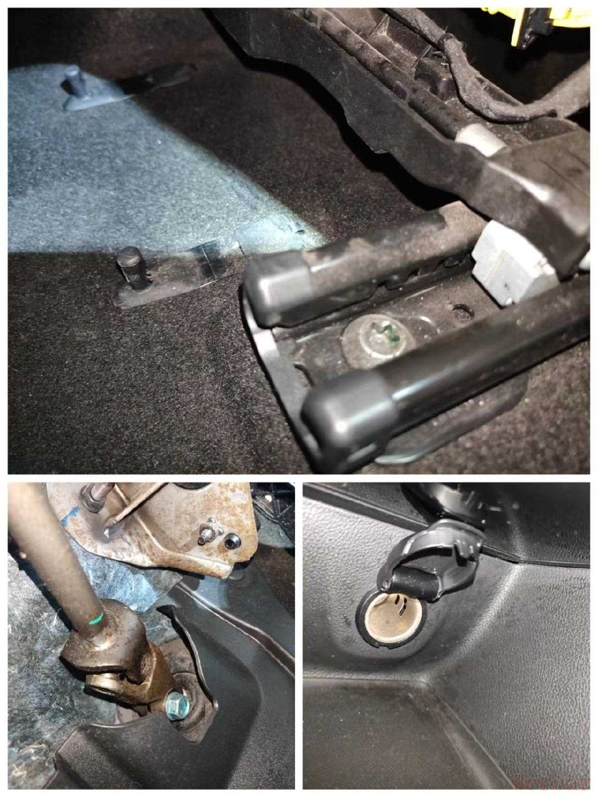 内饰细节处,可以看到座椅滑轨没有拆卸和生锈的情况,地毯下没有发现水渍和泥沙,方向管柱同样没有拆卸和生锈的情况,打开车内保险盒也是没有发霉和改动的情况,因此可以排除是水泡车的嫌疑。