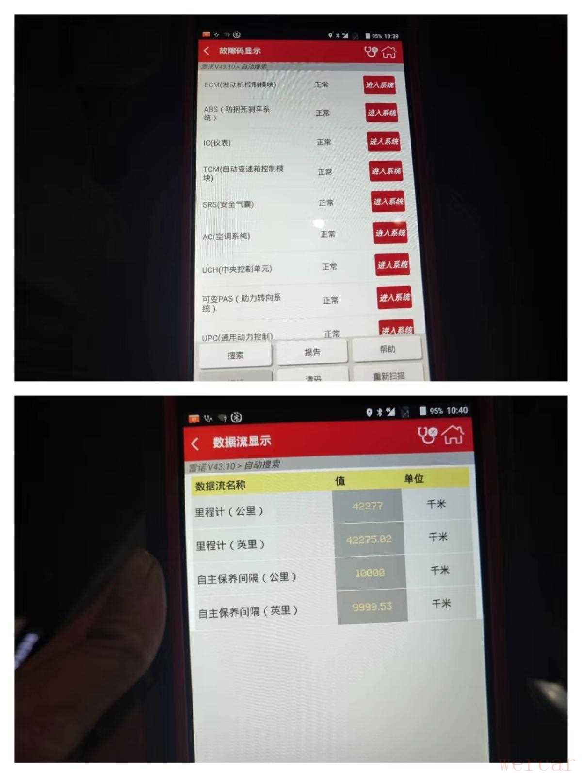 那么外观覆盖件这么检测一圈下来,得出结论的结论是,该车不仅为都是原厂漆水,还是全车原厂件,也就是说这辆科雷傲基本可以排除是重大事故车的可能,但要下最终定论还是要等看到底盘再说。下面接着检测发动机舱和发动机的情况。
