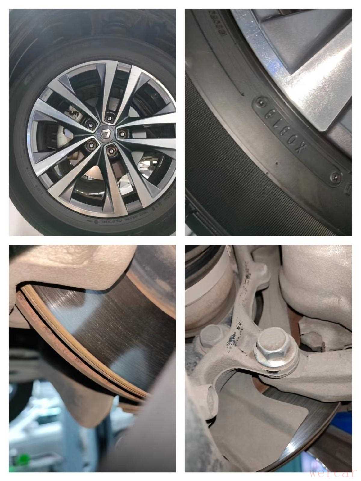 检查全车轮胎的生产日期,均为2018年,符合车辆出厂日期,结合刹车片和刹车盘的磨损程度,再次肯定了公里数的真实性。