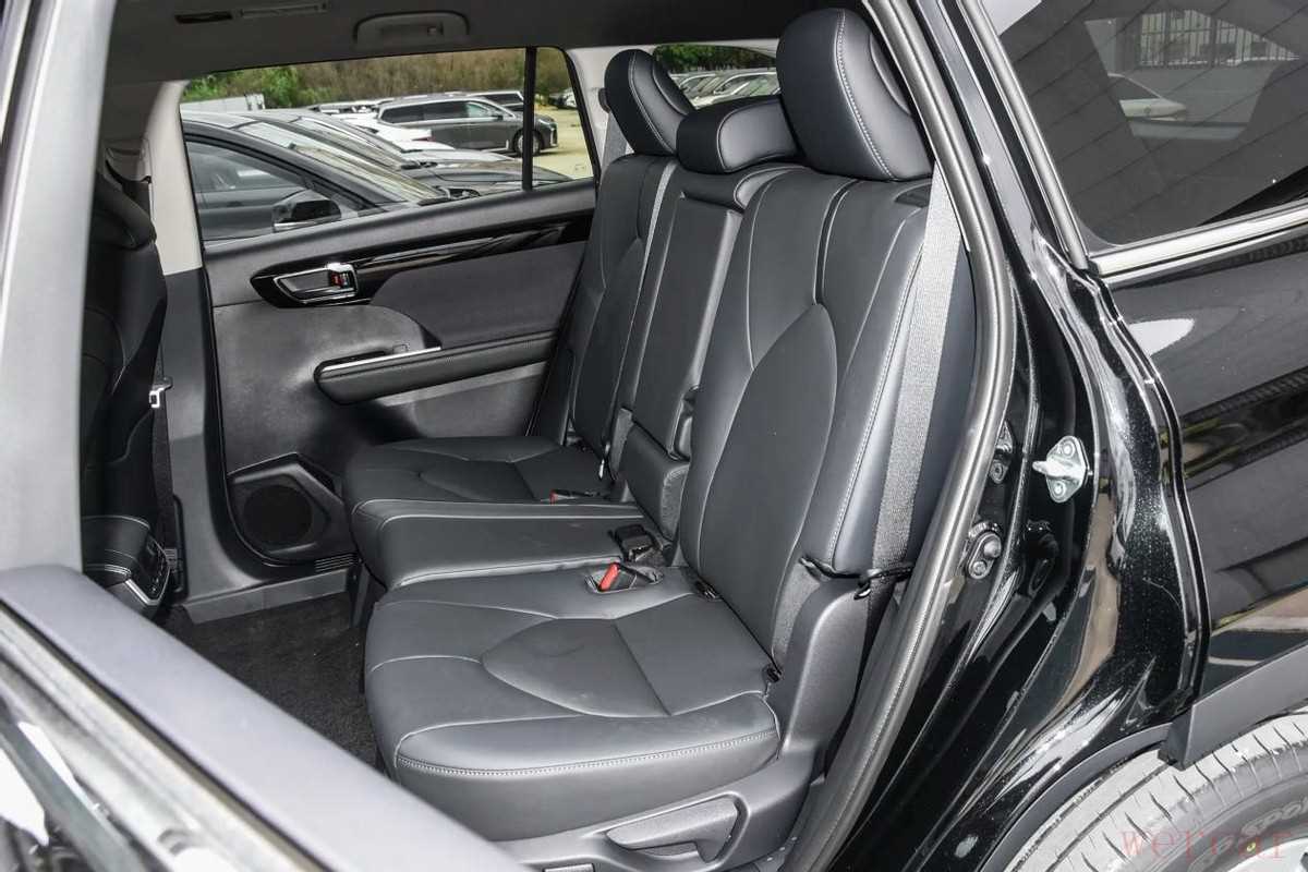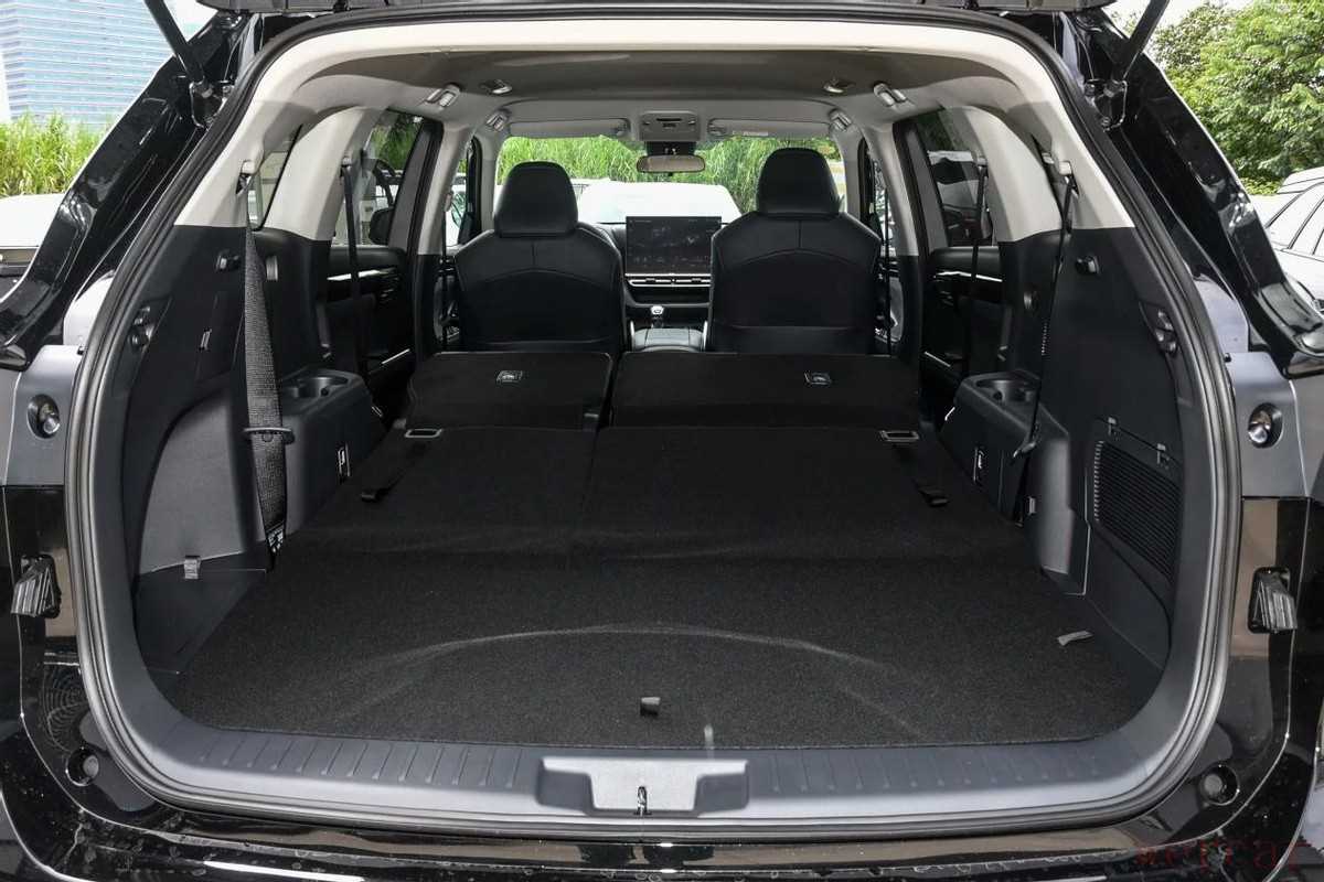 (汉兰达)再来看看汉兰达的尺寸设计,它拥有4965/1930/1750mm,轴距为2850mm,定位于中型SUV。它的车内也标配了皮质座椅,采用2+3+2布局,但座椅暂不支持电动调节,通风、记忆等功能也暂时缺席。其后备厢容量尚未公布,但有消息称,它的后备厢基础容量420-456L,能放4个20英寸行李箱,二三排全部放倒后,能拓展到2075-2076L,容量还是比较大的。