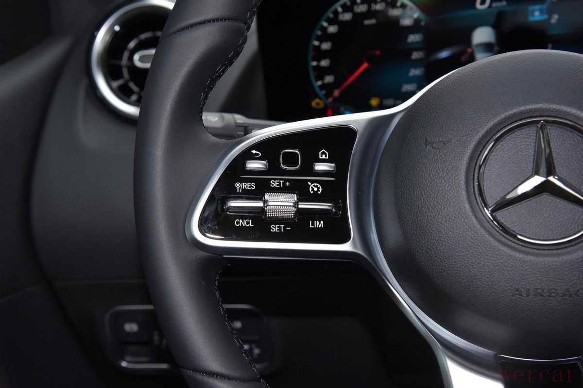 尾部造型与国产版本的奔驰车型有些许的不同,尾灯采用分体式布局,整体造型相对圆润,与头灯形成遥相呼应。宽大的后扰流板能够进一步增添外观的运动气息,同时下包围也有着双排气的装饰,也蛮符合国内年轻用户的审美。