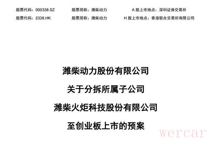 前一天2月25日晚间,潍柴动力发布公告称,拟分拆旗下子公司潍柴火炬科技股份有限公司(下称“火炬科技”)至创业板上市。