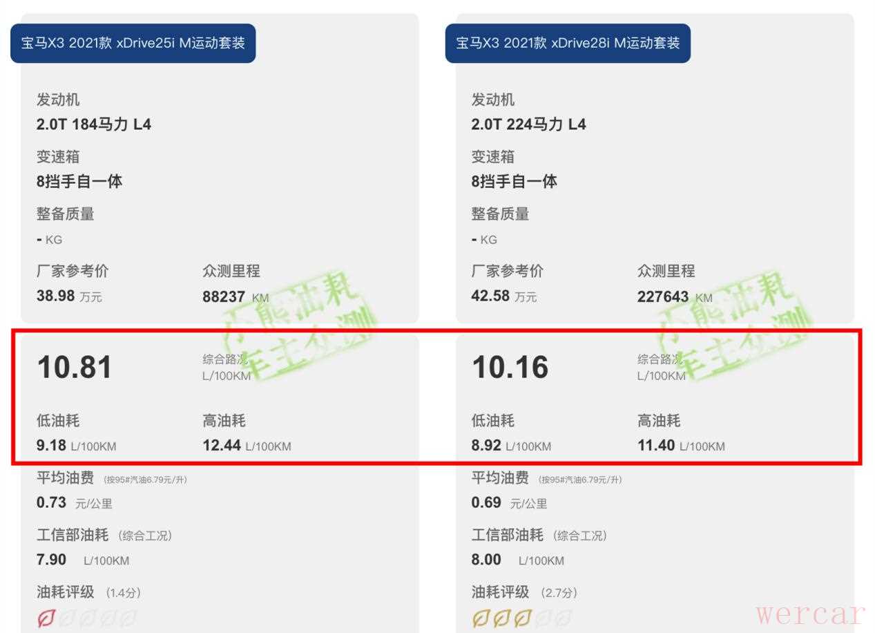 从小熊油耗数据来看,宝马X3的整体油耗偏高,其中25i比28i的还要高一些。