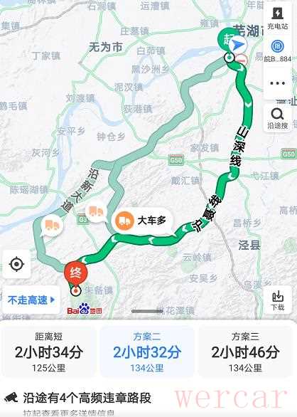 此次的行程大致如下:芜湖——九华山——宏村。一方面是因为节假日的高速路太堵,另一方面是为了测得真实的油耗数据,天涯君尽可能地避开高速,选择国道和县道行驶。