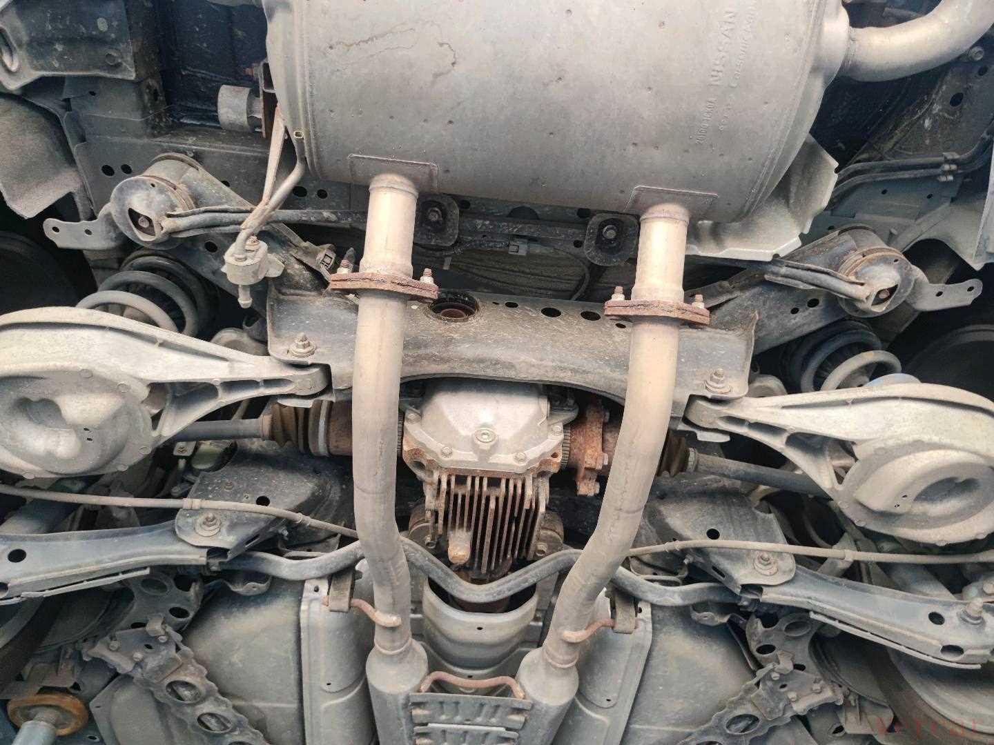 外观没什么问题,紧接着检测发动机舱,能看到机舱表面落满了灰尘,这才是正常家用车的状态!神机VQ37VHR就隐藏在灰尘下面,3.7L V6自然吸气,最大马力351匹,最大扭矩363牛米,配7速手自一体变速箱和全时四驱,在当时这动力据可不得了!